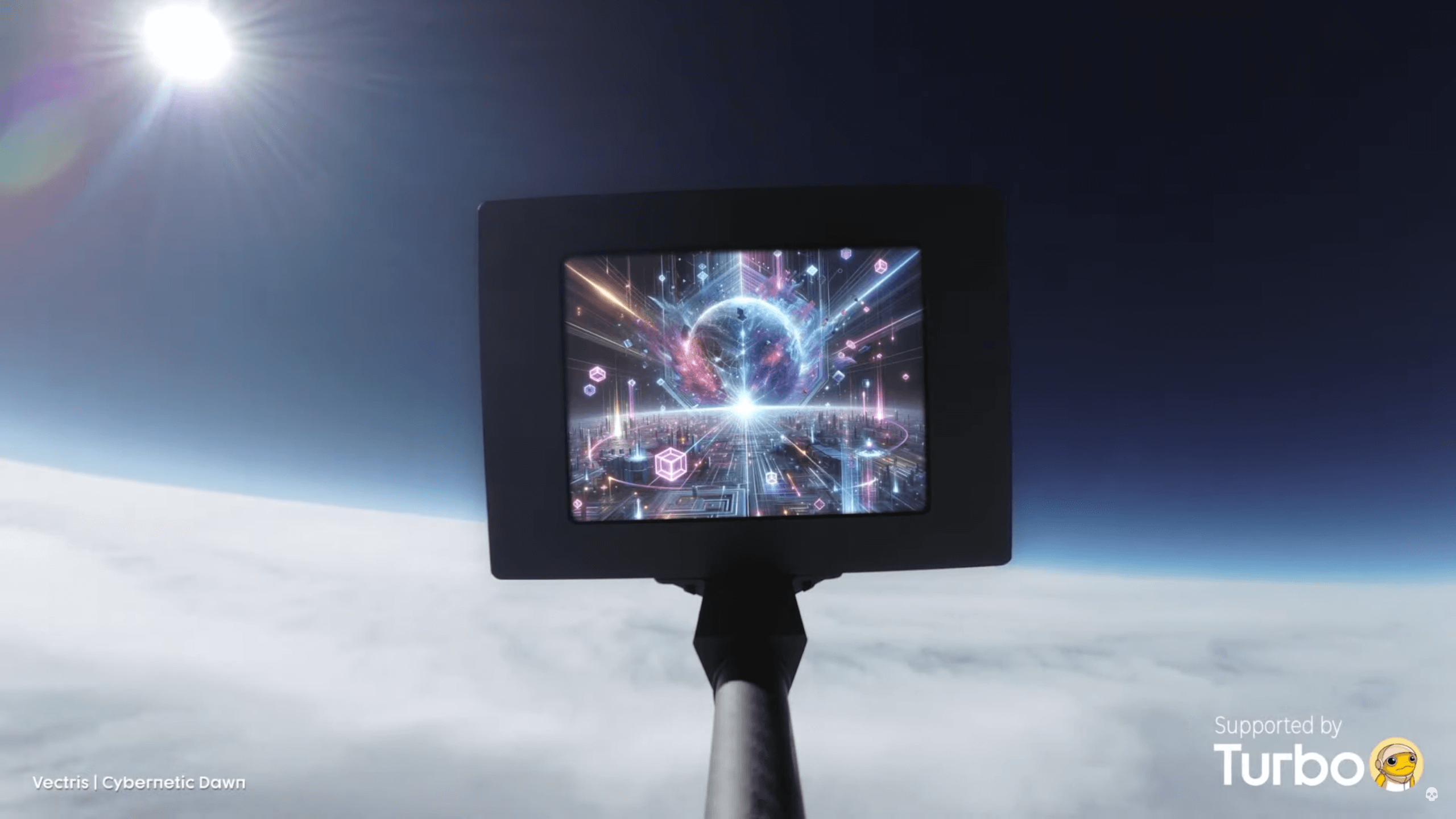On the 14th of May 2024, Cybernetic Dawn was launched in to space as part of a “AI Art to Space!” by Turbo.